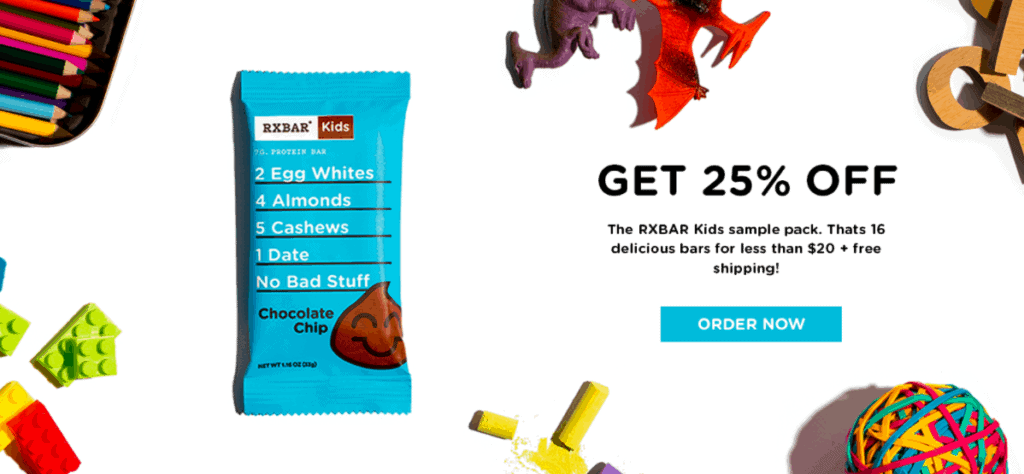 Get your RXBAR Kids sample box with 16 whole food protein bars